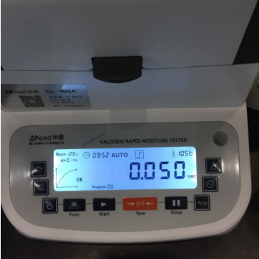 樹(shù)脂水分測(cè)試儀使用方法?? 測(cè)試樹(shù)脂顆粒:倒出4克左右樹(shù)脂料顆粒倒在不銹鋼托盤(pán)中,為了使測(cè)試過(guò)程中樹(shù)脂水分儀將…